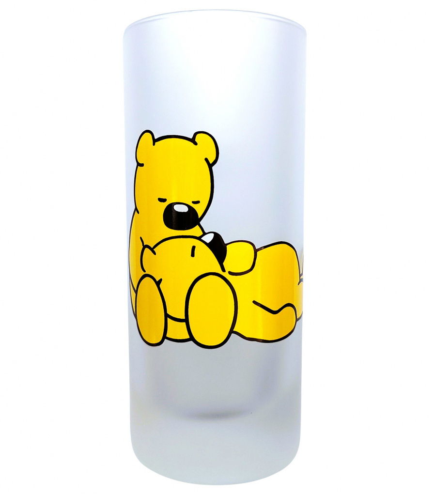 Pohár s medveďmi, ktorí si užívajú pohodičku, je vyrobený z matného skla a má objem 250 ml.
