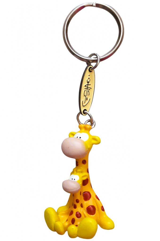 Kľúčenka Veľká žirafa s malou žirafou v sede je vyrobená z tvrdého PVC materiálu a má rozmer približne 4 cm. Žirafy v oranžovo bordovej farbe majú kovový krúžok na zavesenie s Ø 2,5 cm.