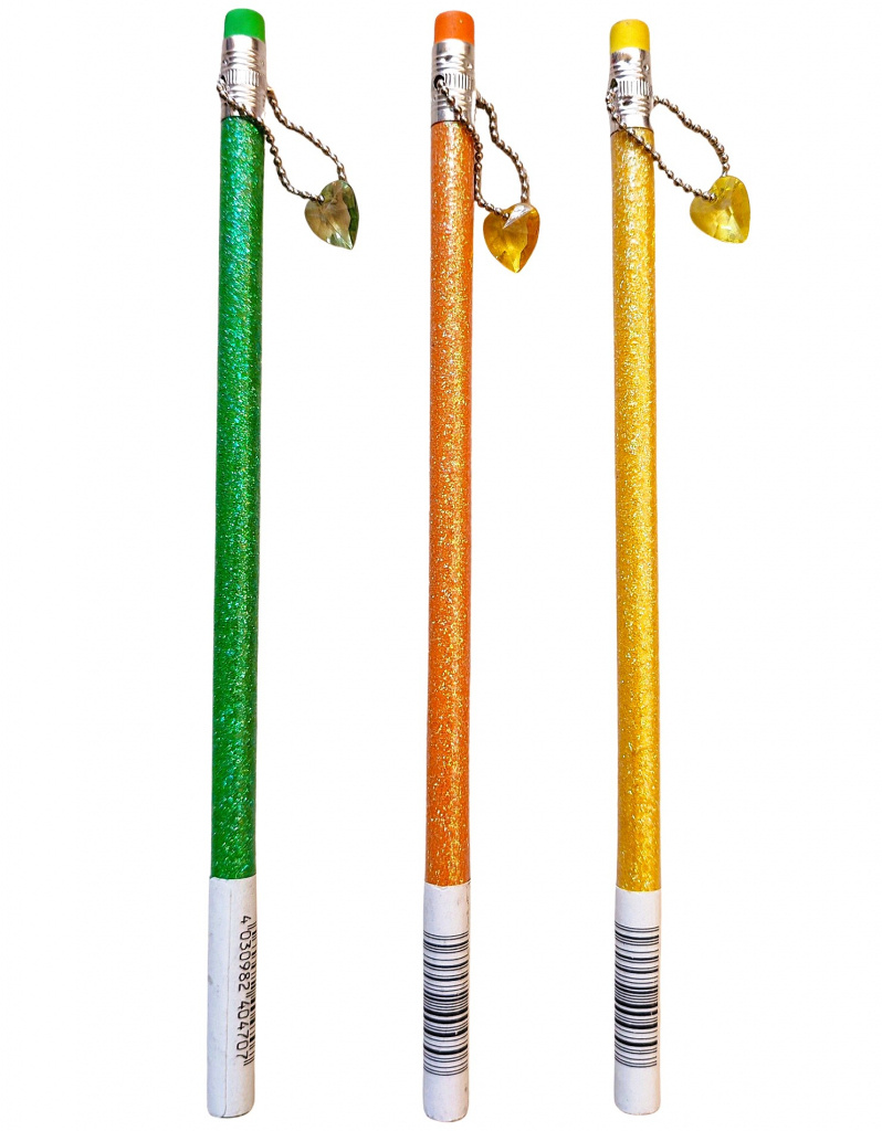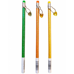 Klasická ceruzka v bežnej veľkosti v krásnom trblietavom vzhľade v žltej, zelenej alebo oranžovej farbe s príveskom srdce.