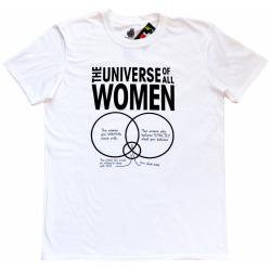 Tričko z kvalitnej 100% bavlny vo veľkosti XL je bielej farby a je na ňom text v anglickom jazyku THE UNIVERSE OF ALL WOMEN (Vesmír všetkých žien).