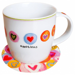 Hrnček Emotions z kvalitného porcelánu bielej farby má objem 300 ml. Dať si teplý čaj alebo voňavú kávu z porcelánového hrnčeka so srdiečkovým dizajnom, ocenia nielen večné romantičky.