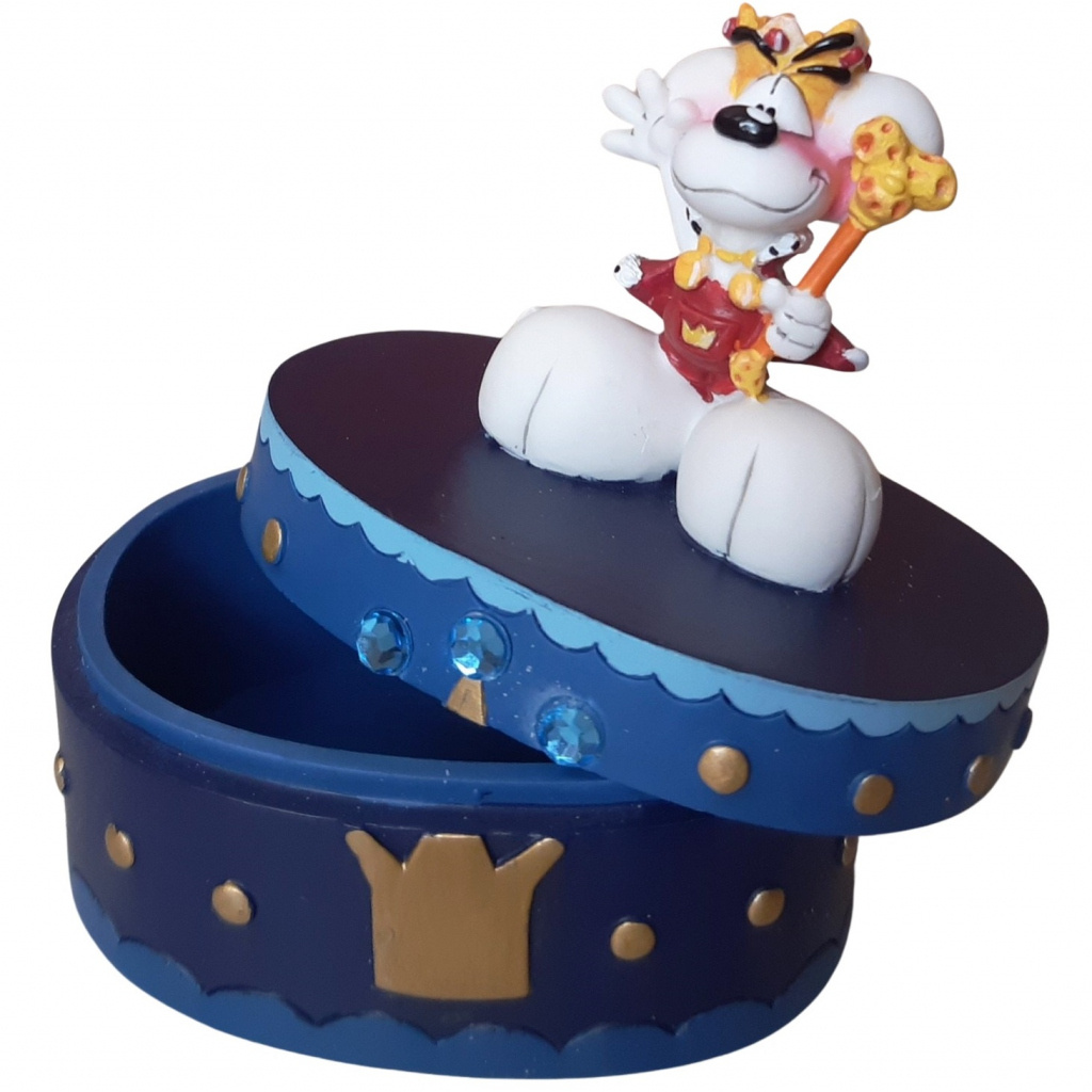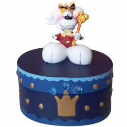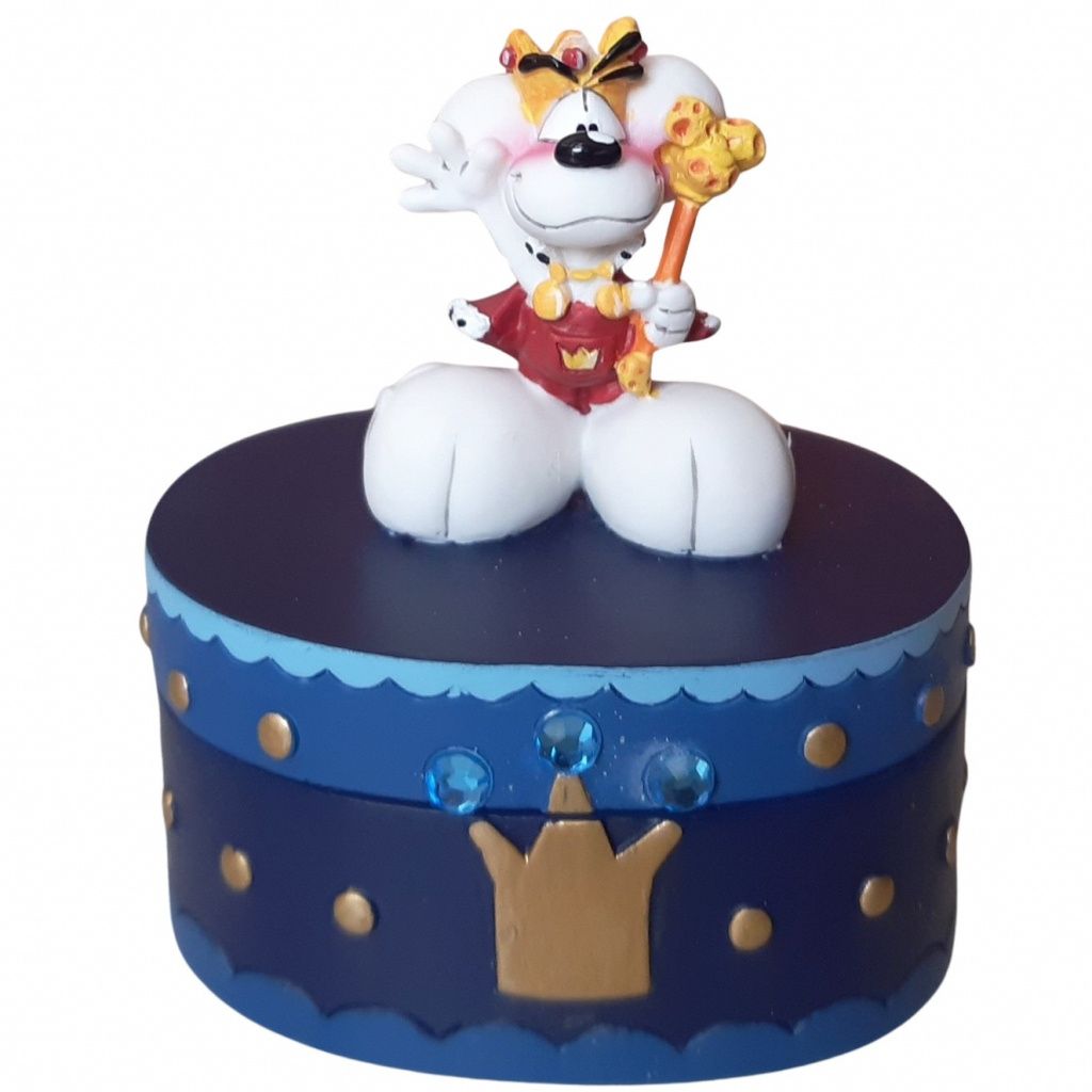 Škatuľka na drobnosti s myšiakom Diddl je modrej farby, je vyrobená z polyresinu a je ručne maľovaná. Myšiakovi Diddl ako kráľovi nechýba kráľovský plášť, koruna a žezlo. Šperkovnička s rozmermi približne 4,8x6,2x3,1 cm (výška bez figúrky, výška s figúrkou je ca. 7 cm) je vhodná na uloženie drobných cenností.