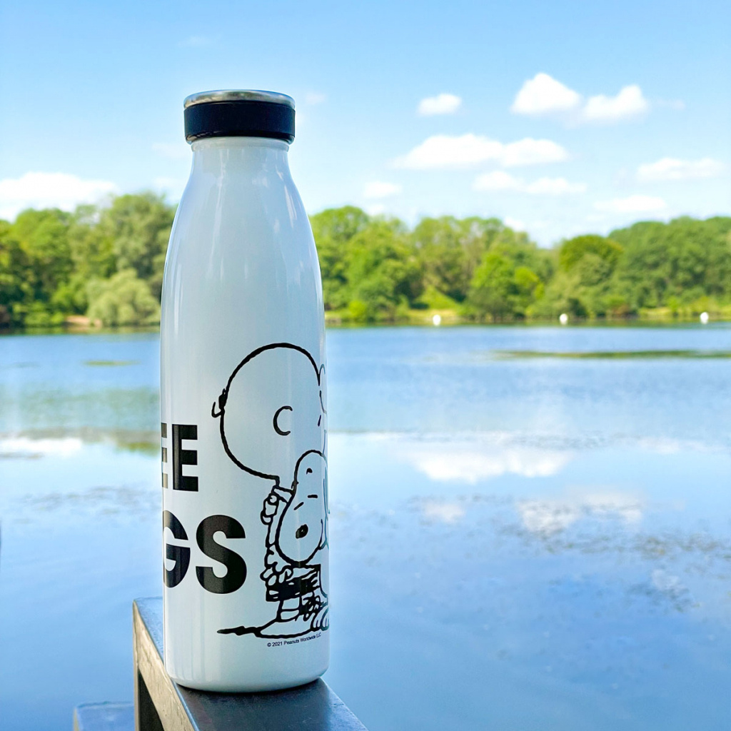 Biela fľaša na pitie Peanuts s Charlie Brownom a Snoopym je dokonalým každodenným spoločníkom do školy, univerzity, práce alebo pri športe.